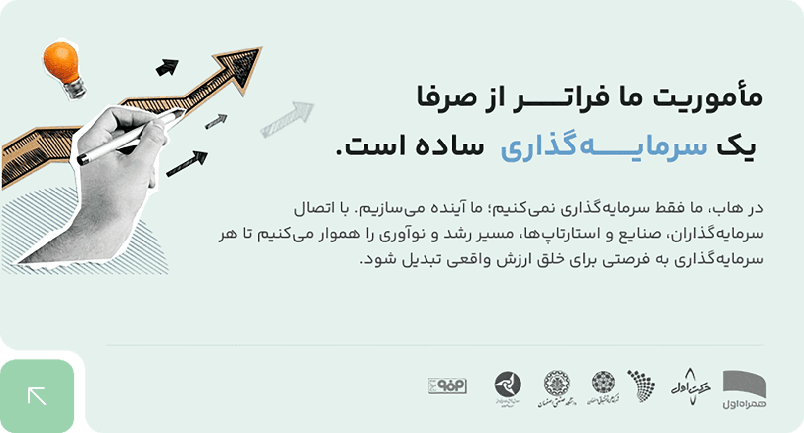 هاب اصفهان، نقطه اتصال سرمایهگذاران، صنایع و استارتاپهاست. ما با ایجاد بستری تخصصی، مسیر رشد تیمهای نوآور را هموار میکنیم و فرصتهای سرمایهگذاری هوشمند را به واقعیت تبدیل میسازیم. هاب، جاییست که نوآوری، سرمایه و تجربه بههم میرسند تا آینده ساخته شود.